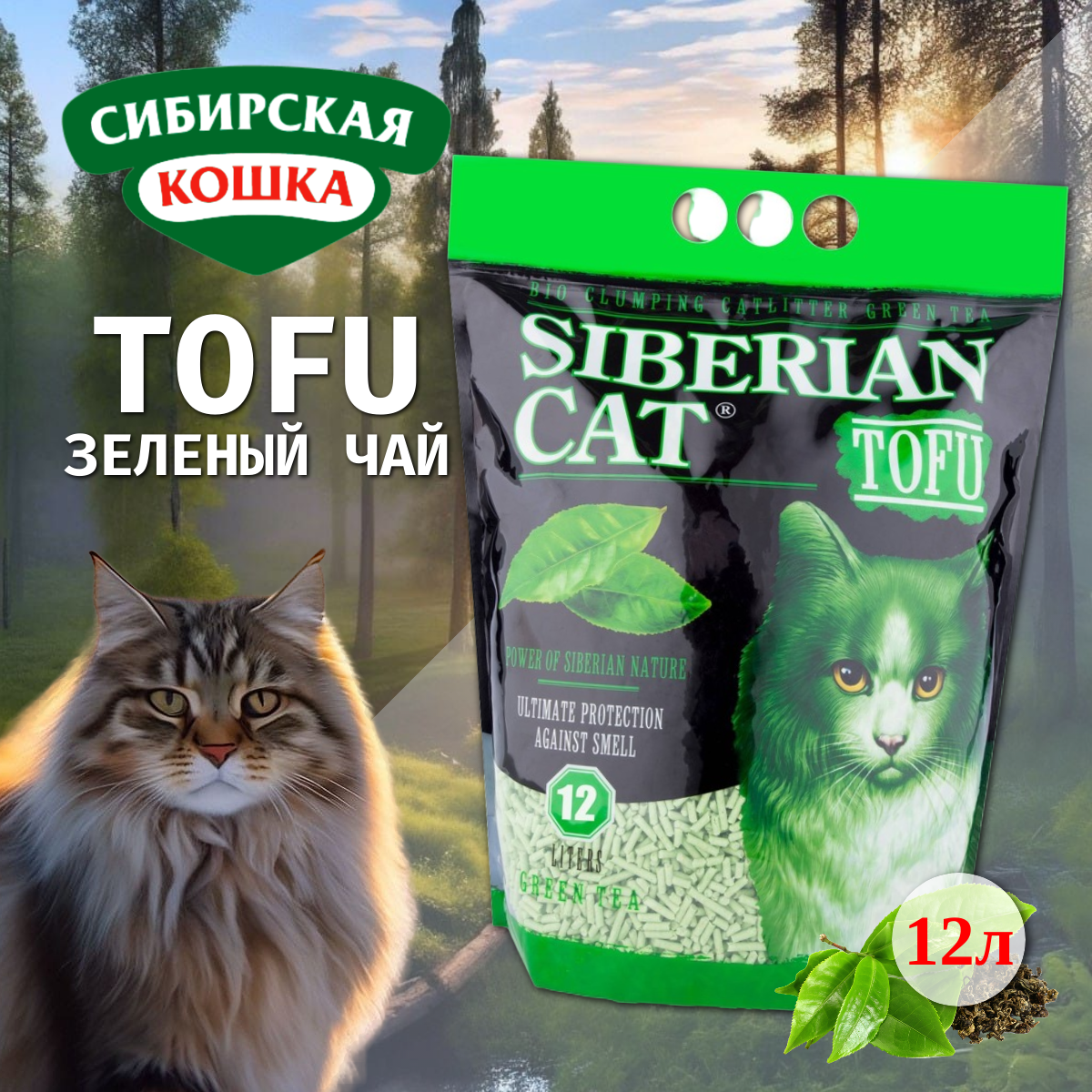 Комкующийся наполнитель Сибирская кошка TOFU, биоразлагаемый, зеленый чай, 12 л