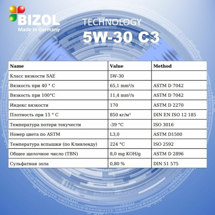 BIZOL Bizol^85126 85126 Bizol Синт. Мот.Масло Technology 5w-30 Sn C3 (4л)