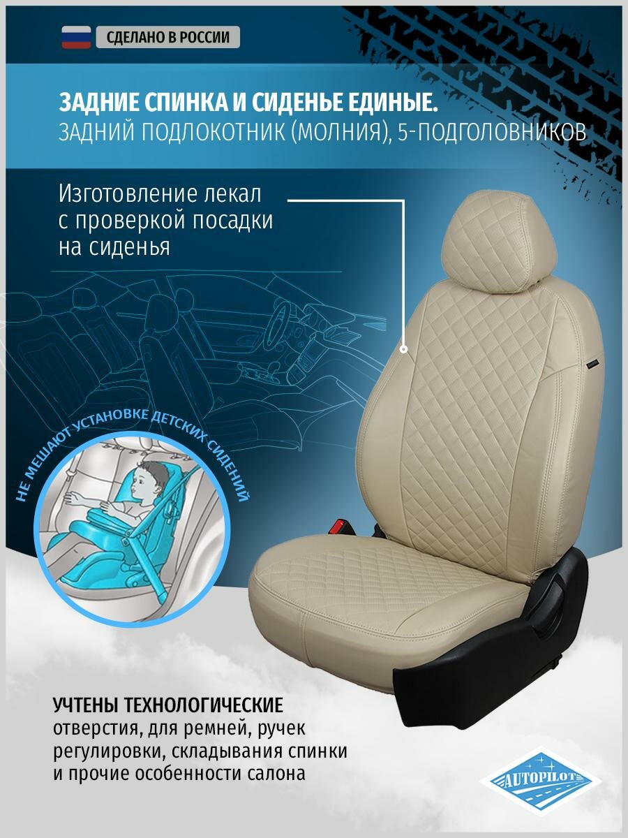 Авточехлы для Nissan Almera 1 Classic 2006-2013 Автопилот Темно-Бежевый Экокожа с ромбом ni-al-0613-tbtb-r