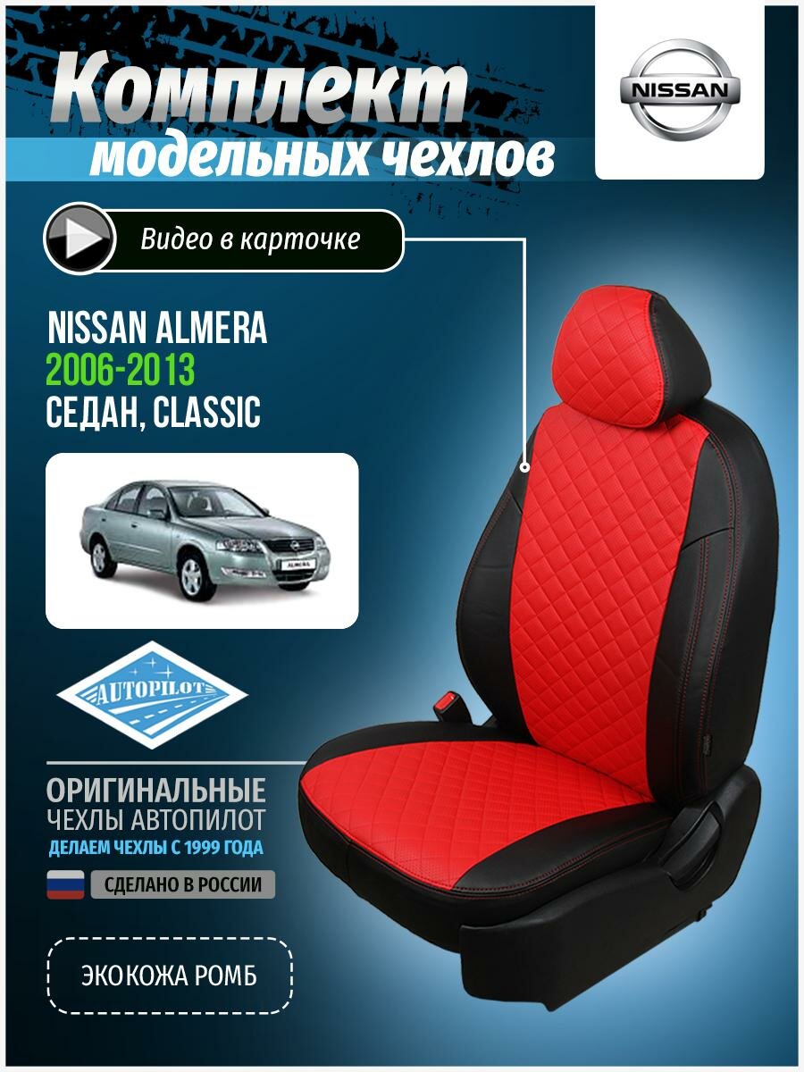 СохранитьЧехлы для Nissan Almera 1 Classic 2006-2013 Автопилот Красный Экокожа с ромбом ni-al-0613-chekr-r интересное: