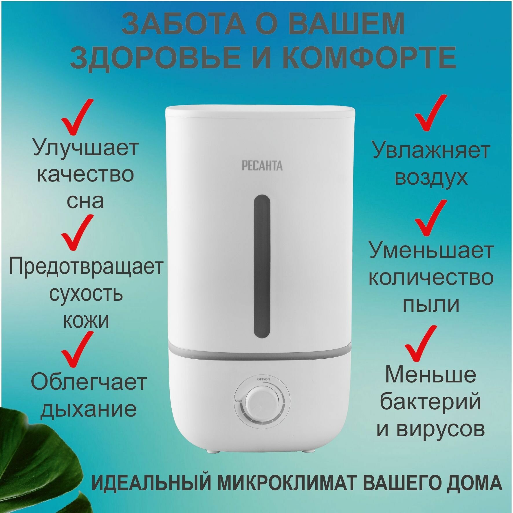 Увлажнитель воздуха для квартиры / для дома белый 3 л, 25 Вт Ресанта УВ-3 увлажнитель для дома (воздухоувлажнитель) 67/7/1