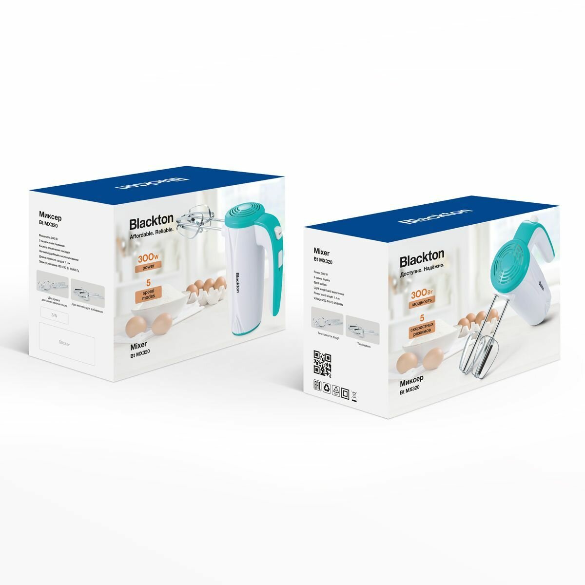 Ручной миксер BLACKTONBt MX320 300 Вт, белый/бирюзовый