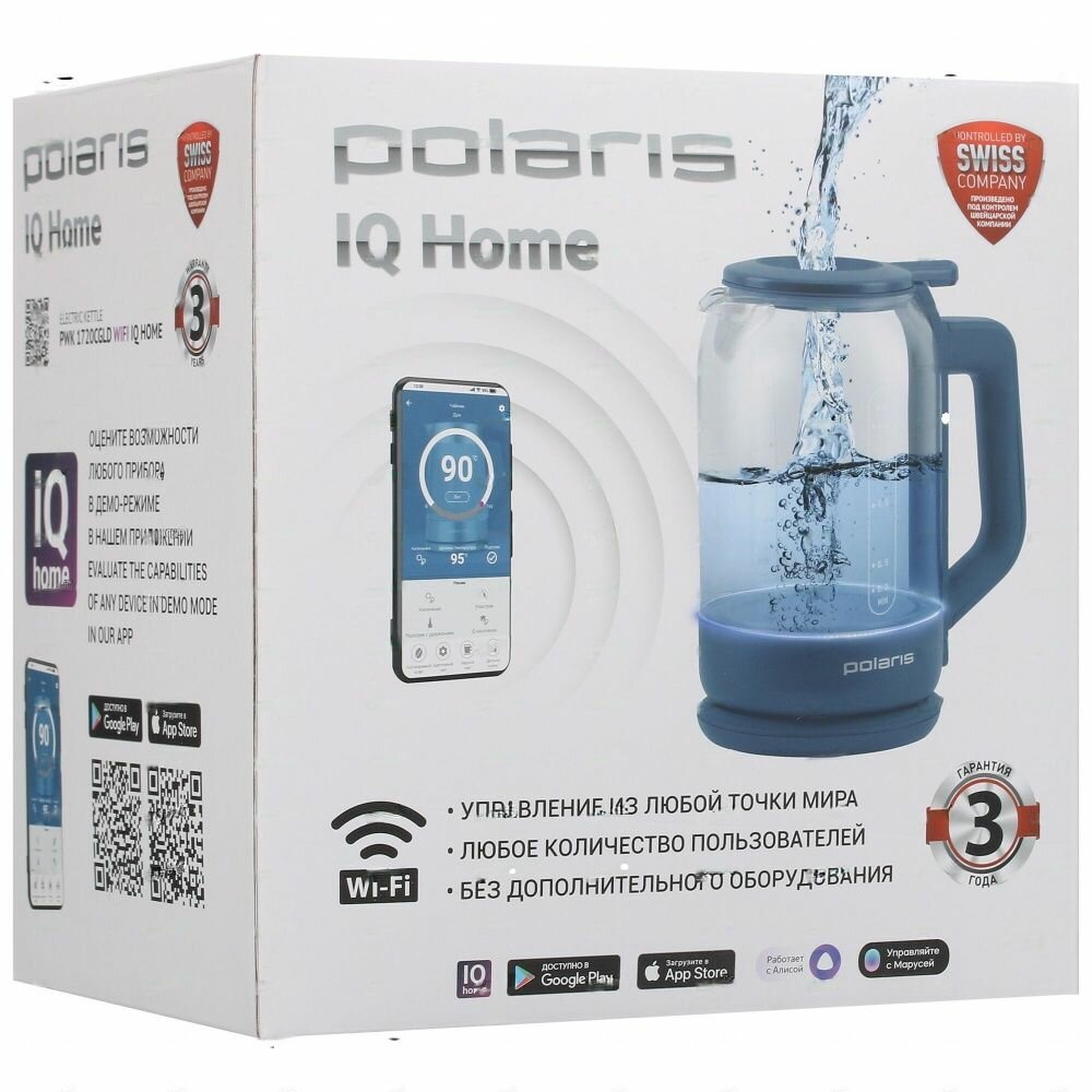 Купить Электрический чайник Polaris PWK 1720CGLD Wi-Fi IQ Home, синий