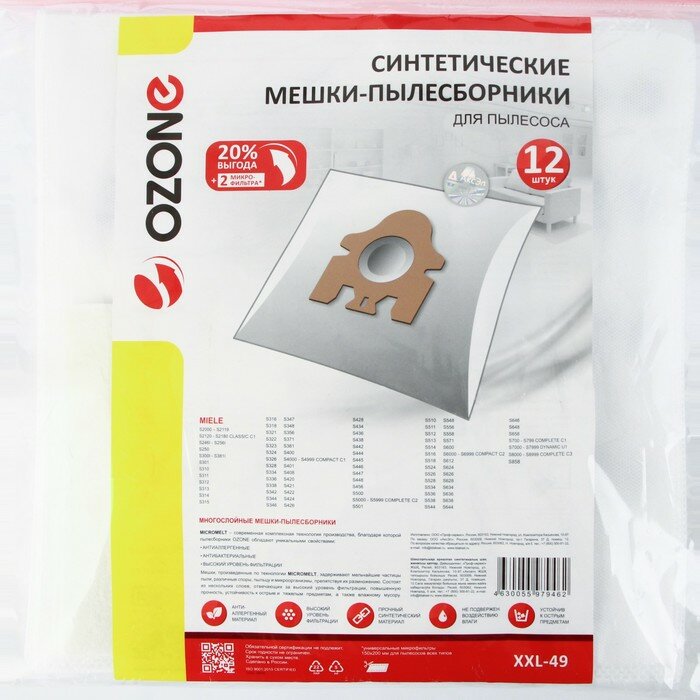OZONE micron XXL-49 синтетические многослойные пылесборники 12 шт. (MIELE)