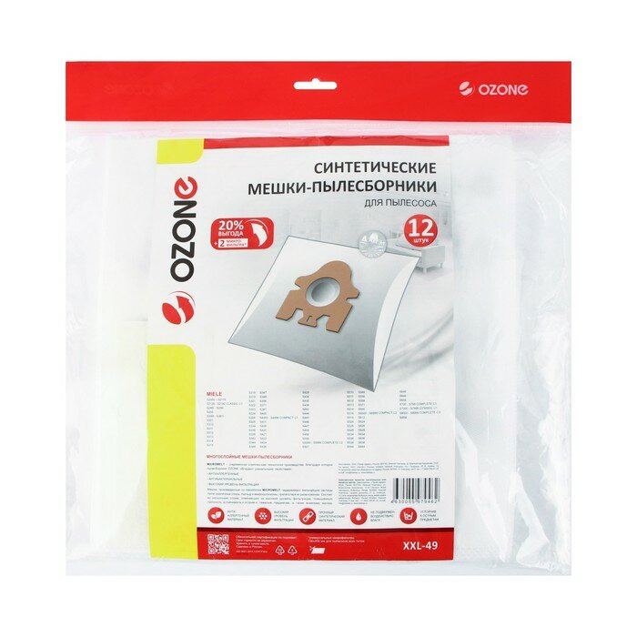 Синтетические мешки-пылесборники Ozone XXL-49 для пылесоса MIELE, 12 шт + 2 микрофильтра