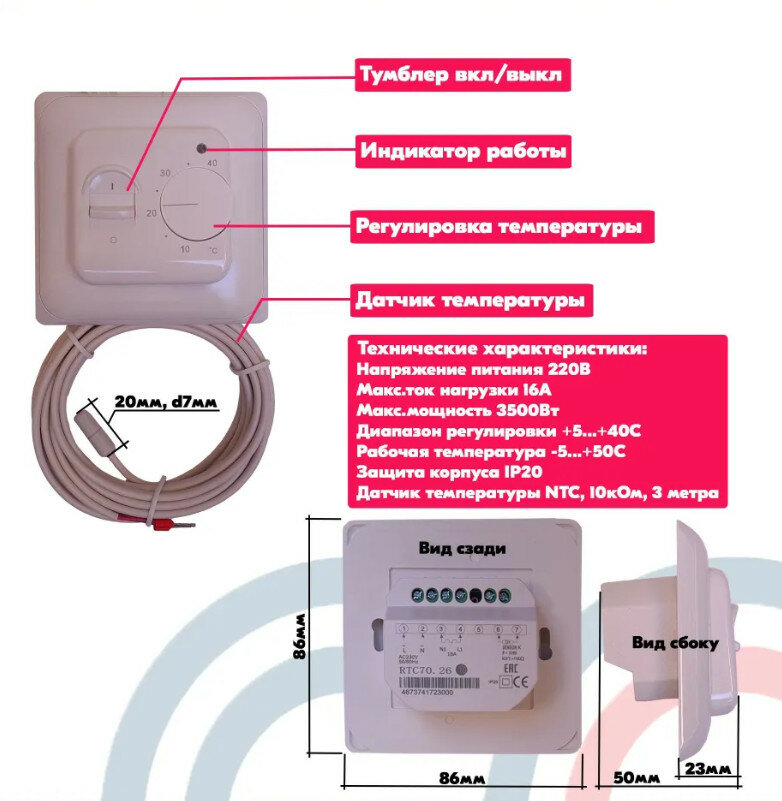 Тёплый пол с терморегулятором электрический под плитку 3.5м2