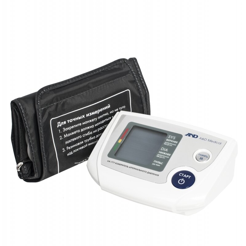 Автоматический тонометр AND UA-777 с большой манжетой / технология IntelliSense / память на 30 измерений / индикатор аритмии / дисплей с подсветкой