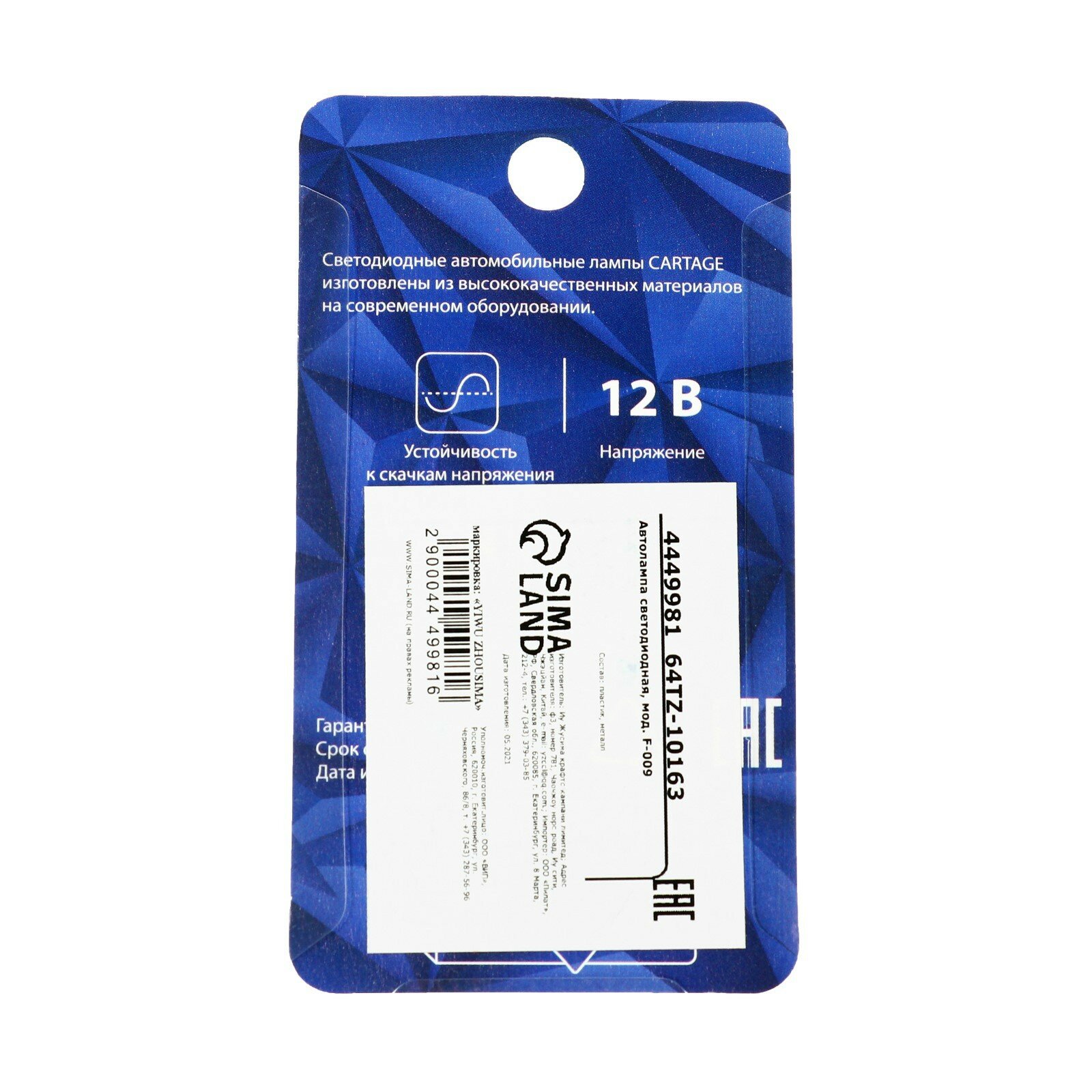 Cartage Автолампа светодиодная Cartage, T10, 12 В, 10 SMD, линза