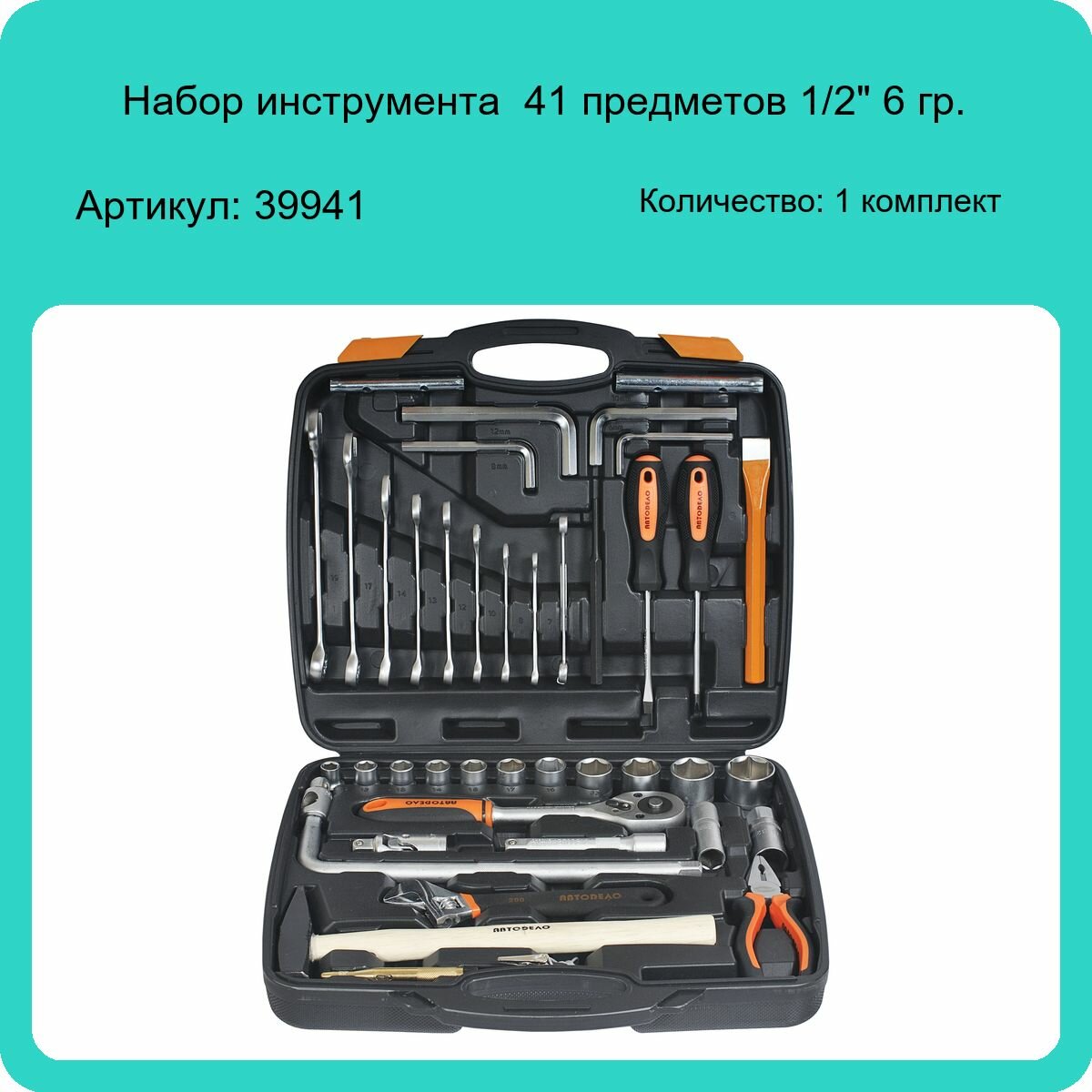 Автодело 39941 Набор инструмента 41 пр. 1/2" 6 гр. АвтоДело 1шт