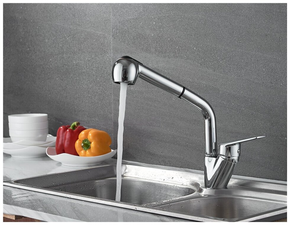 Смеситель для кухни LEDEME эко-картридж д.40мм с выдвижной лейкой L6040