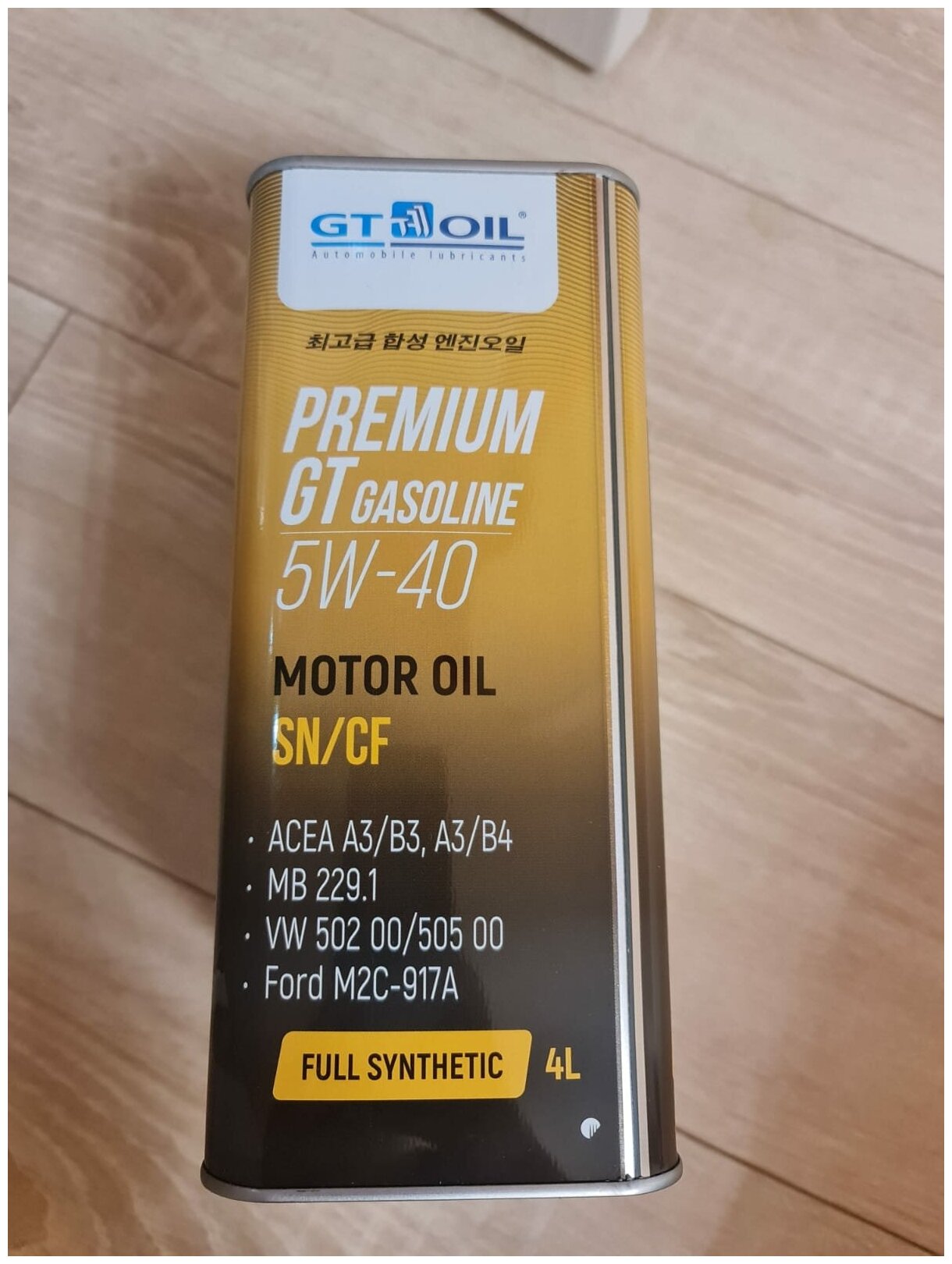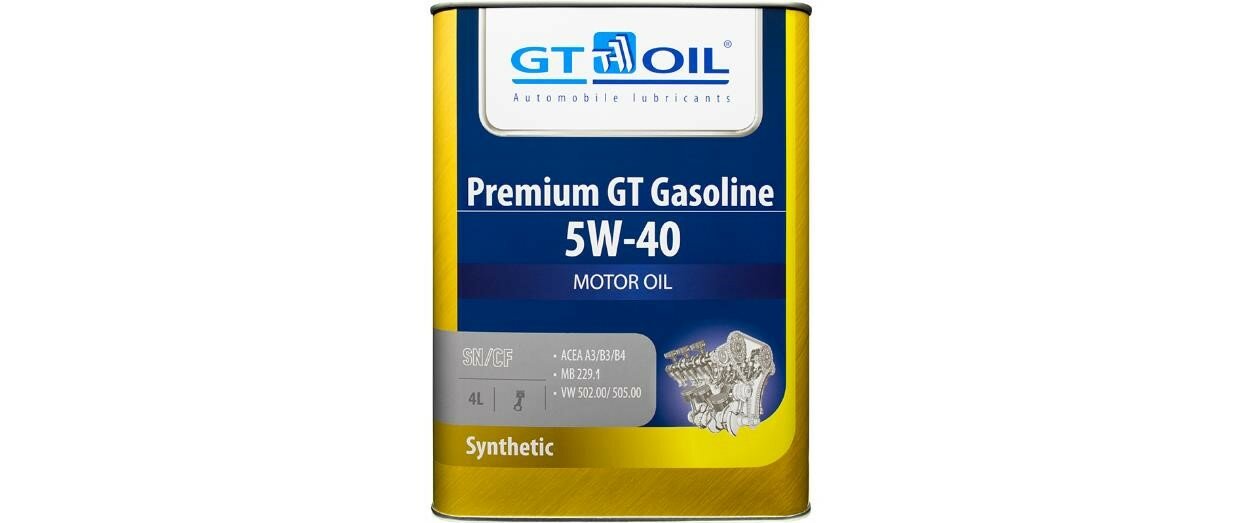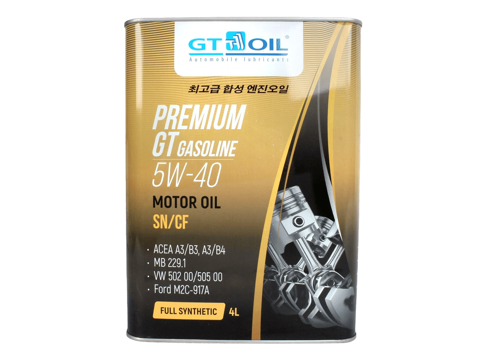 Масло GT OIL Premium GT Gasoline SAE 5W-40 (API SN/CF ACEA A3/B3, A3/B4) синт. (4 л) MB 229.1; VW502.00/505.00; Ford M2C-917А (металл)