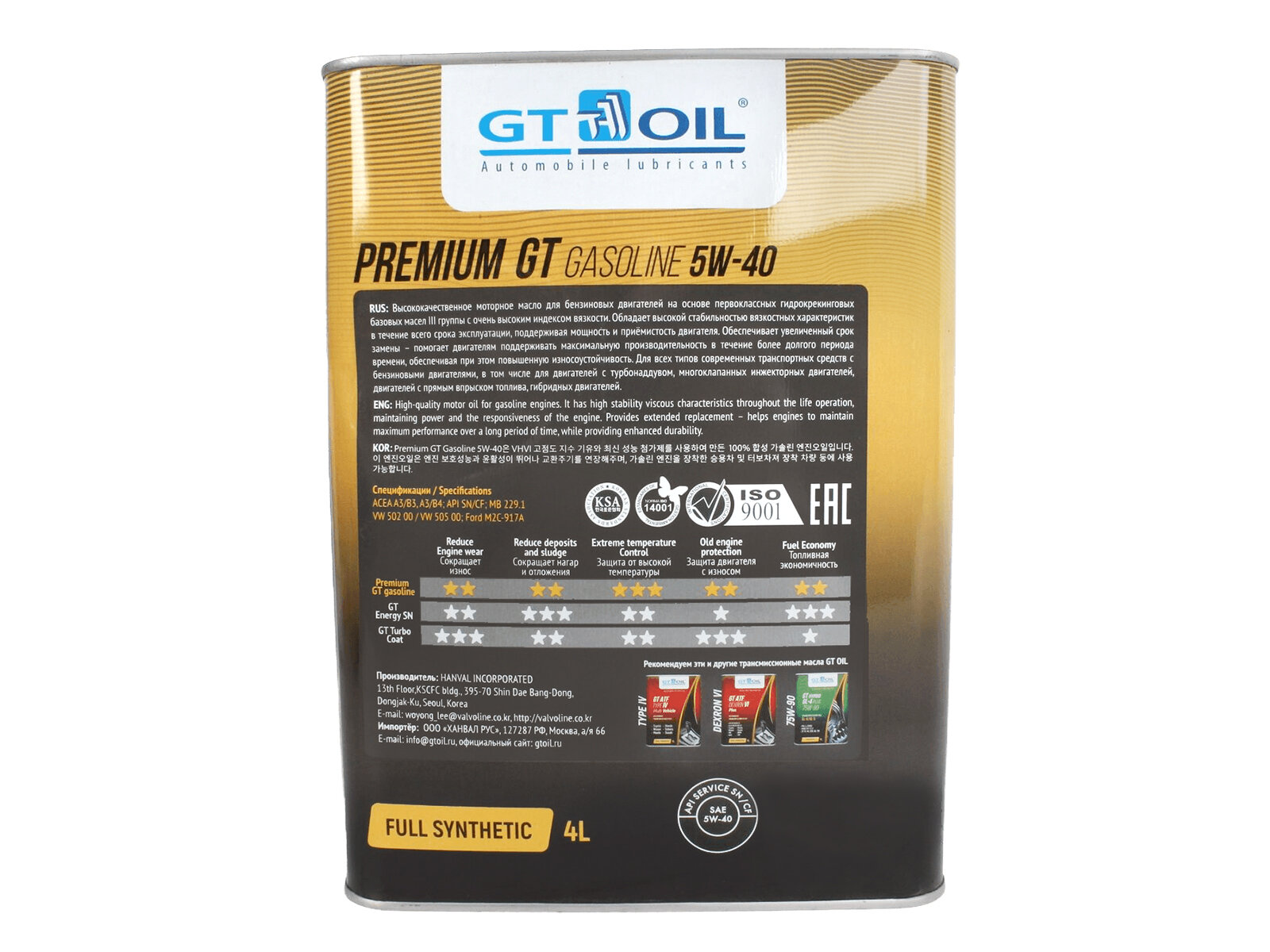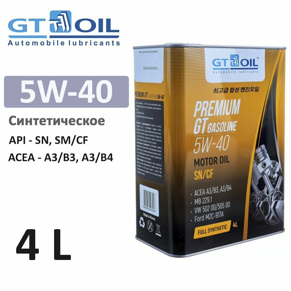 Масло моторное gt oil premium gt gasoline 5w-40 синтетическое 4 л 8809059407226