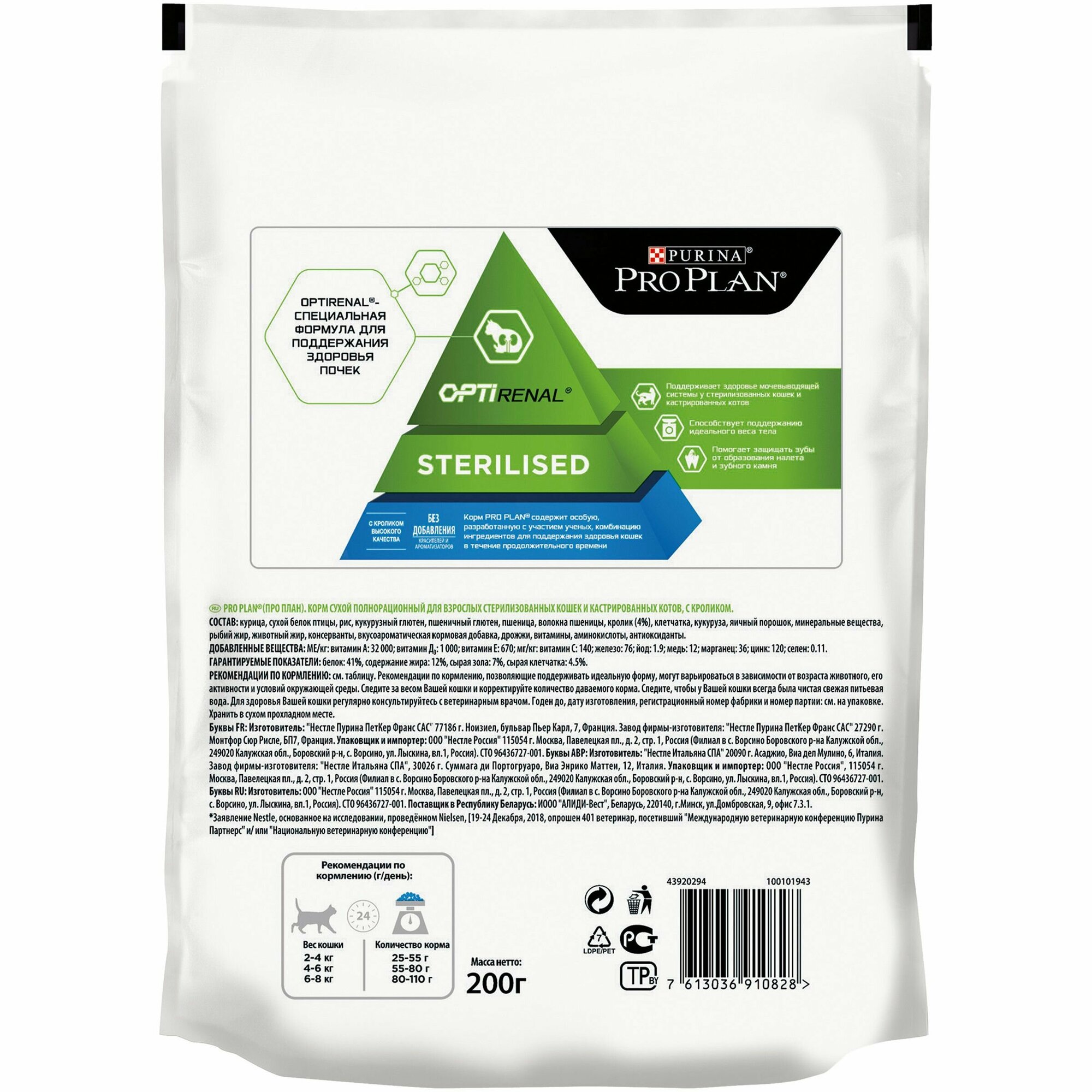 Купить Сухой корм Pro Plan для стерилизованных кошек и кастрированных котов, кролик, пакет, 200г