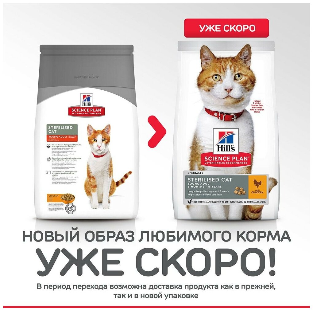 Сухой корм Hills Science Plan для молодых стерилизованных кошек и кастрированных котов, с курицей - 1,5 кг