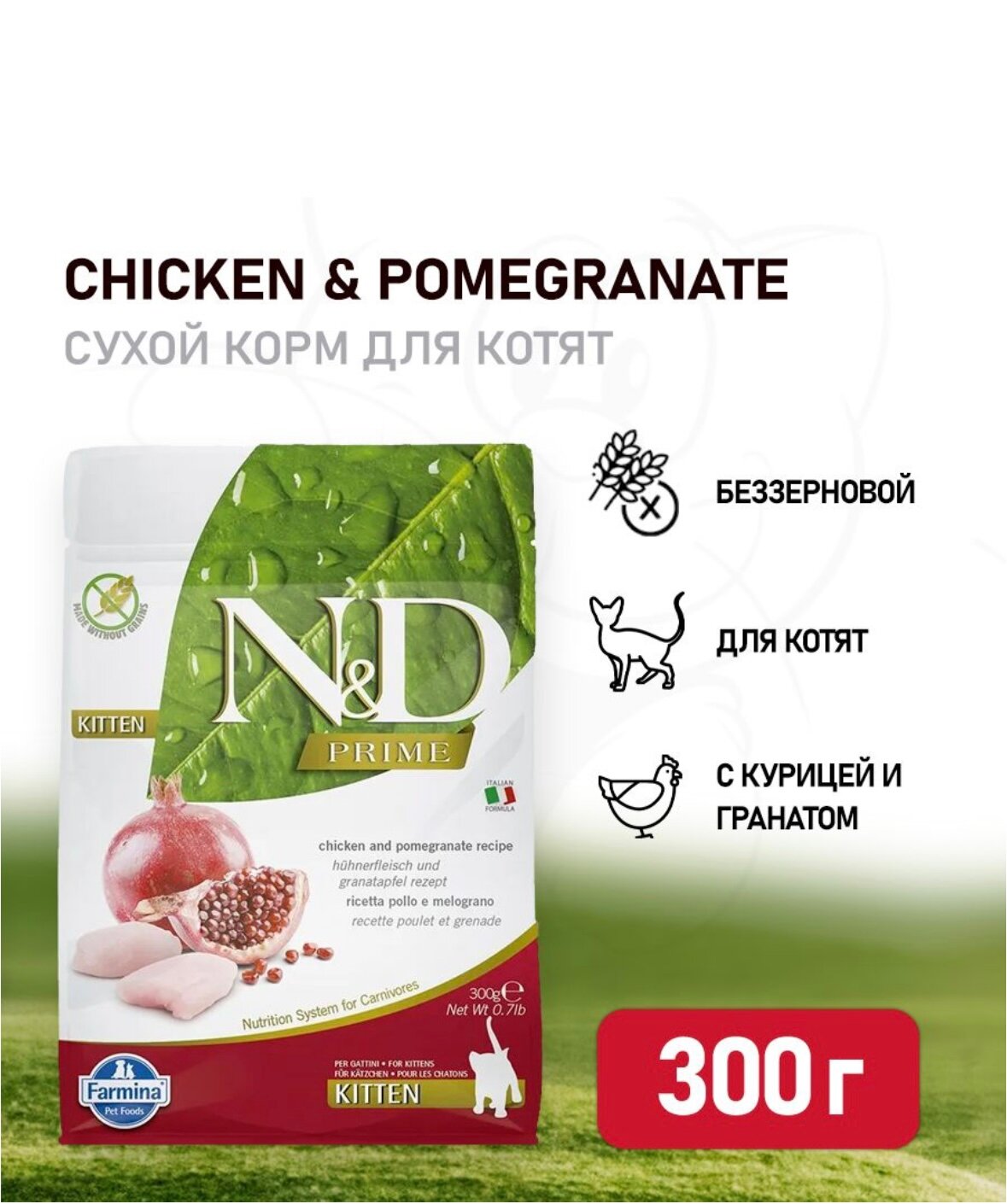 Farmina N&D Prime-Сухой корм для котят , беззерновой, с курицей, с гранатом 300 г