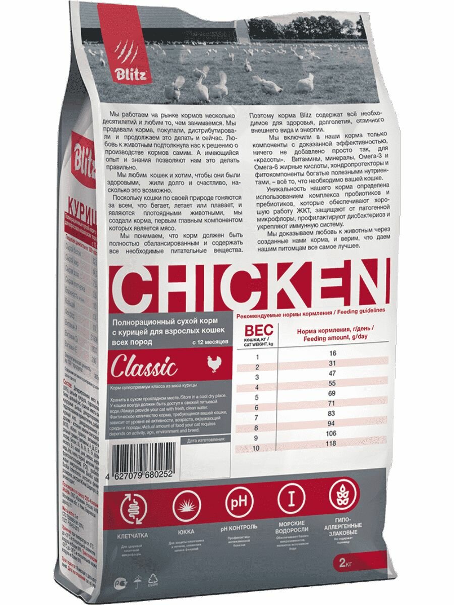 BLITZ CLASSIC ADULT CAT CHICKEN для взрослых кошек с курицей (2 кг)