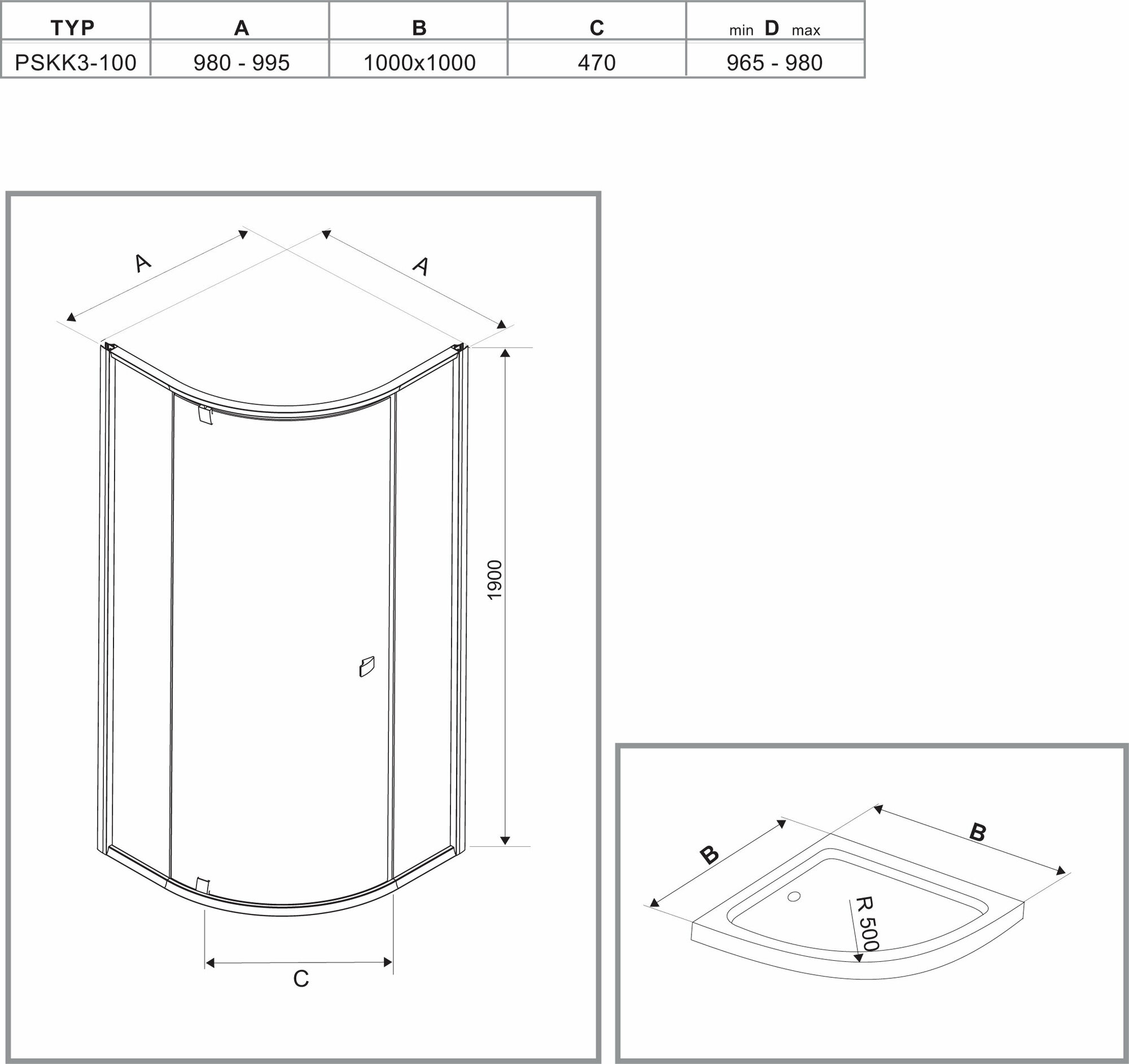 Душевой уголок Ravak PSKK3-100 Transparent, профиль хром