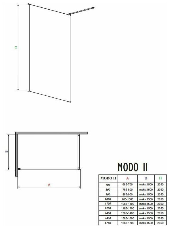 Душевая перегородка Walk-in (свободный вход) Radaway Modo New II 140 x 2000