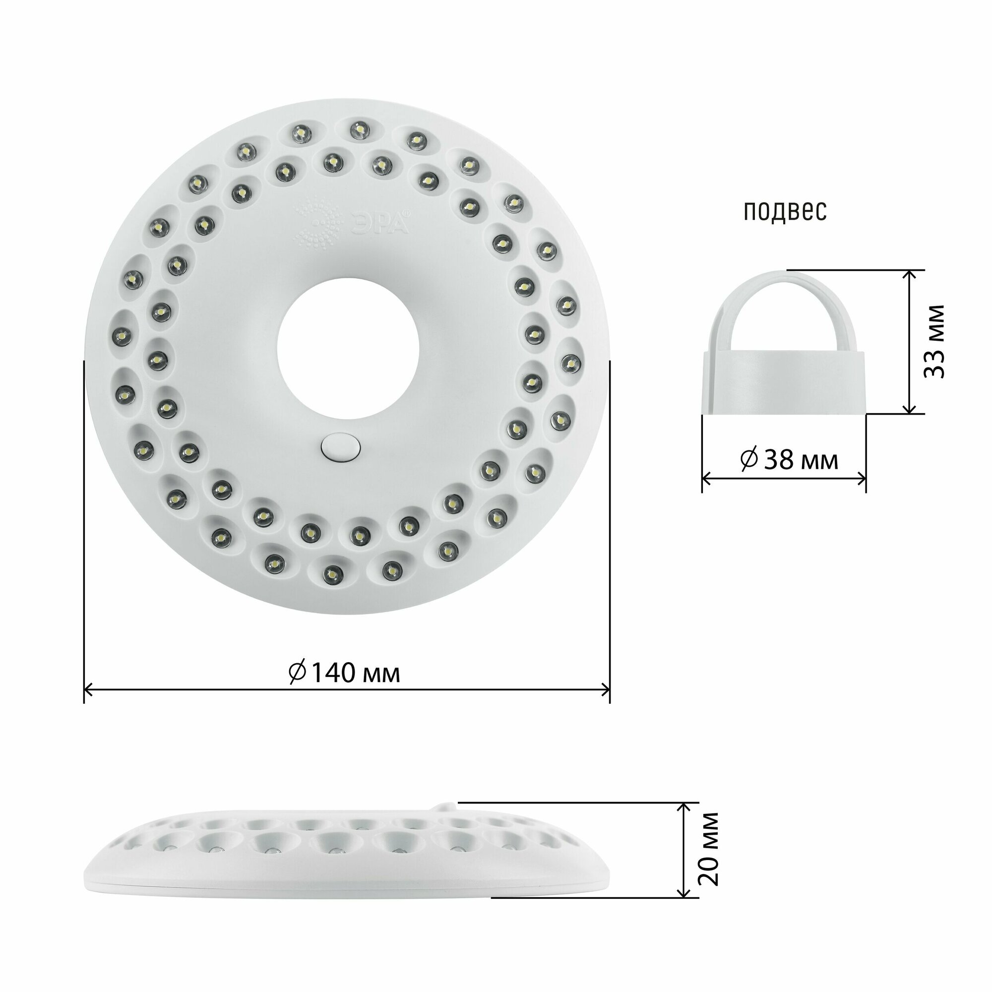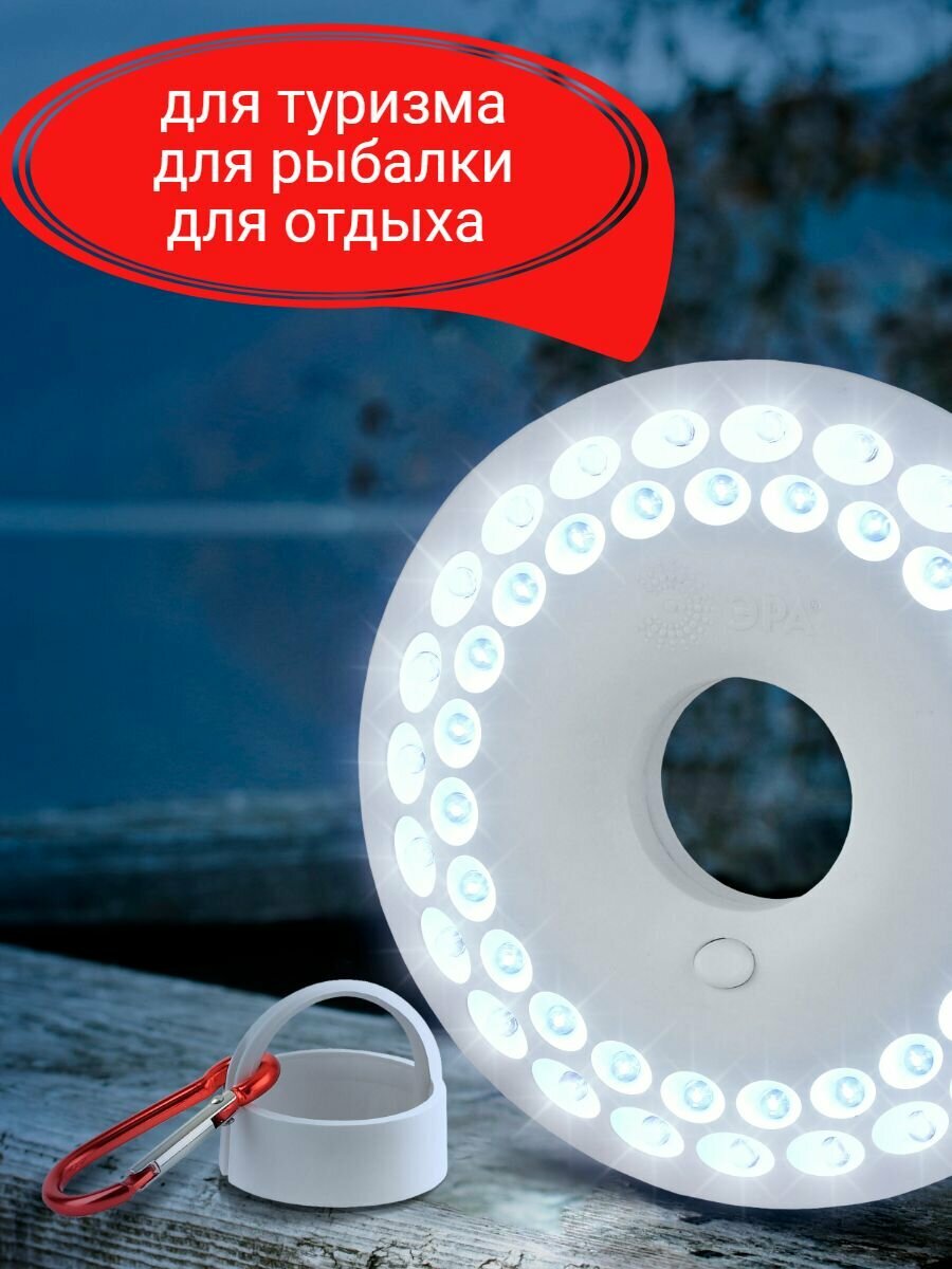 Кемпинговый фонарь Эра "НЛО-48", 48 светодиодов, крепление - магниты, крюк, дальность 21 м., питание - 3 пальчиковые батарейки.