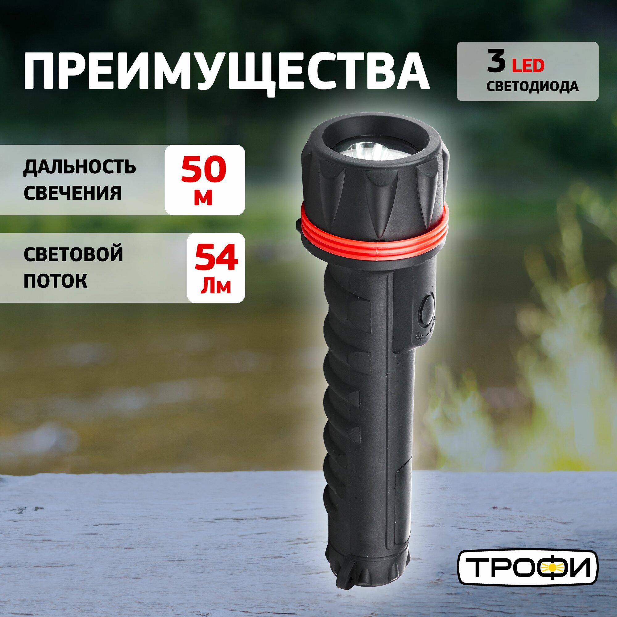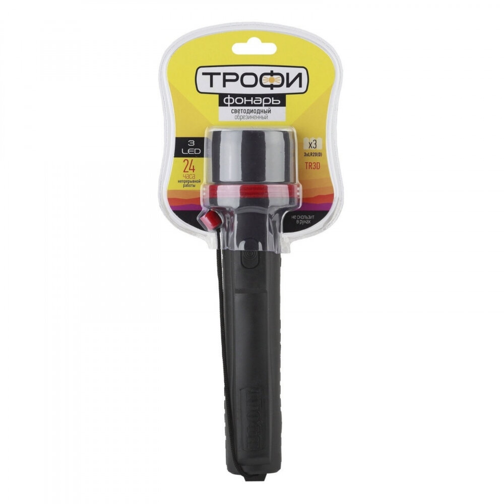 Светодиодный фонарь Трофи TR3D ручной на батарейках резина