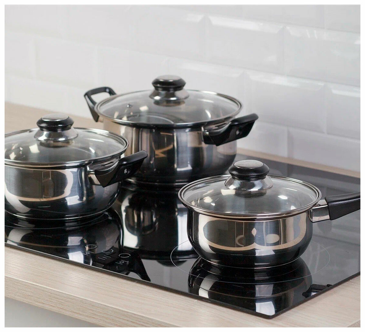 | Комплектация | 2 кастрюли: 2 л, 2.8 л; ковш: 1.4 л; 3 крышки |