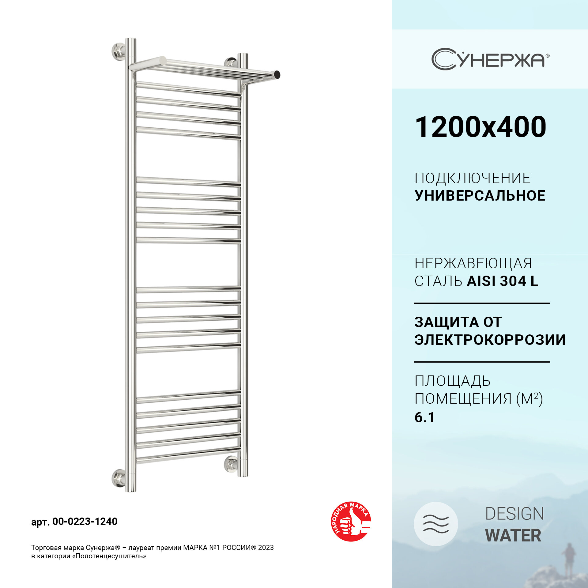 Полотенцесушитель водяной Сунержа Богема+ с полкой 1200x400, полированная сталь 00-0223-1240