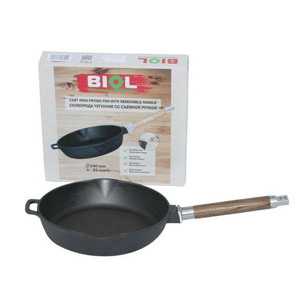 Биол Сковорода чугунная со съемной ручкой, 24 см