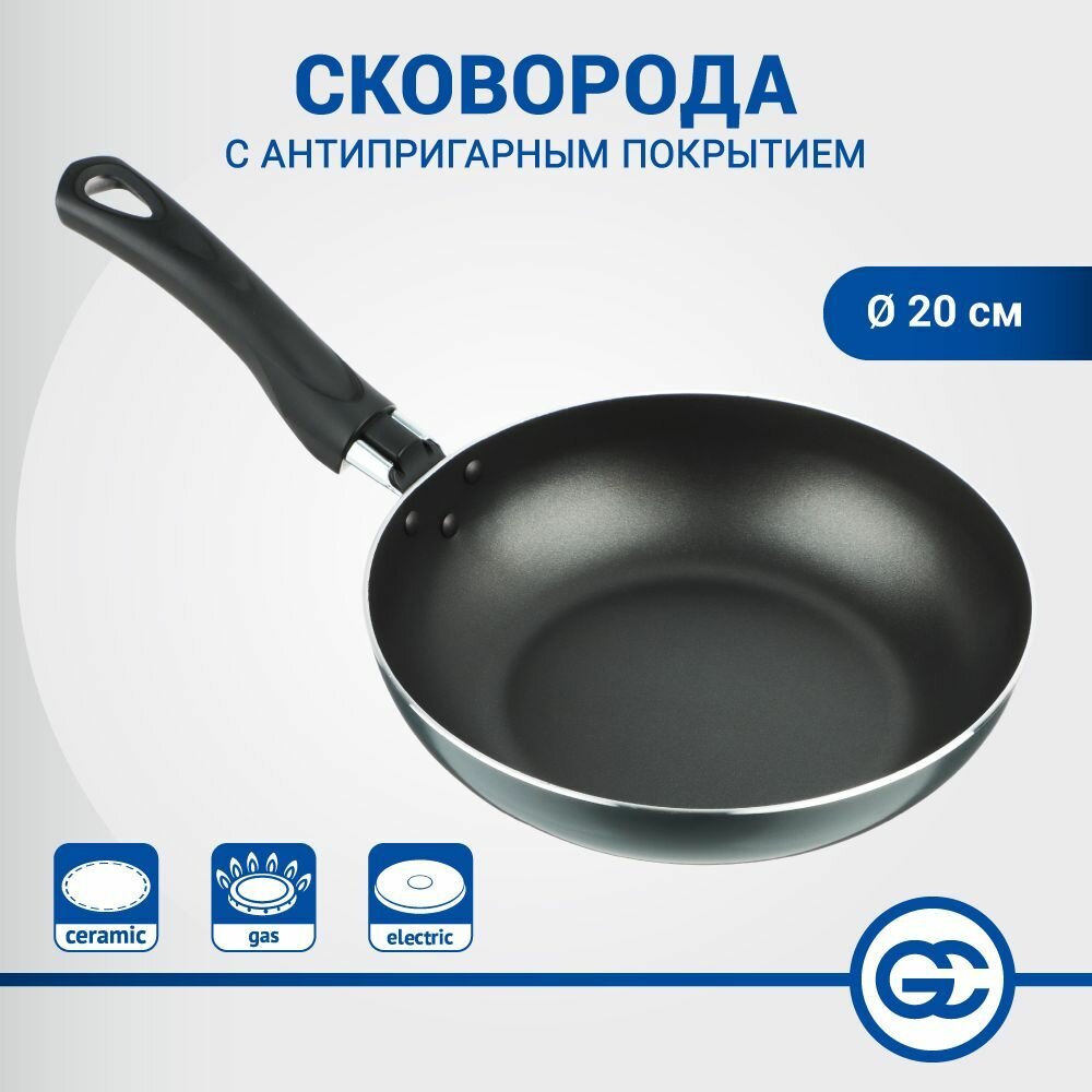 Сковорода с антипригарным покрытием Клио, 20 см, алюминий, без крышки, не индукция