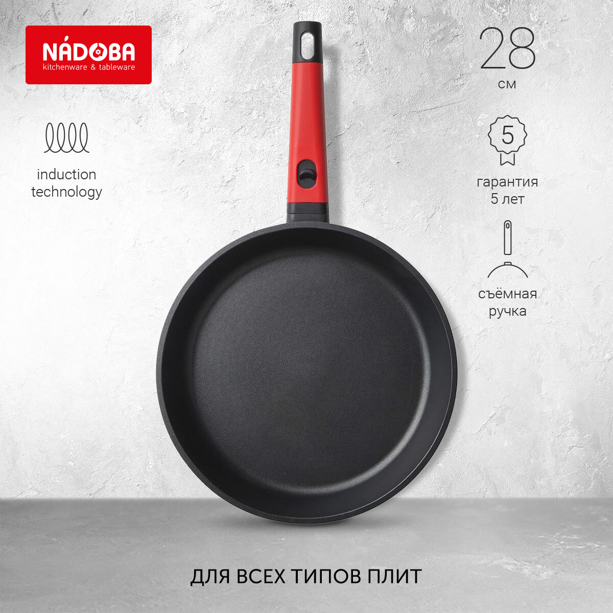 Сковорода с антипригарным покрытием и съёмной ручкой, 28 см, NADOBA, серия GUSTA 729216