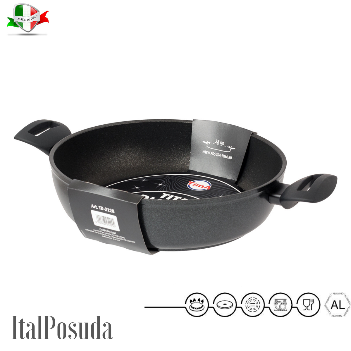 арт. TD-2128 Сотейник без крышки TVS TITAN DIAMOND 28см с 2-мя ручками