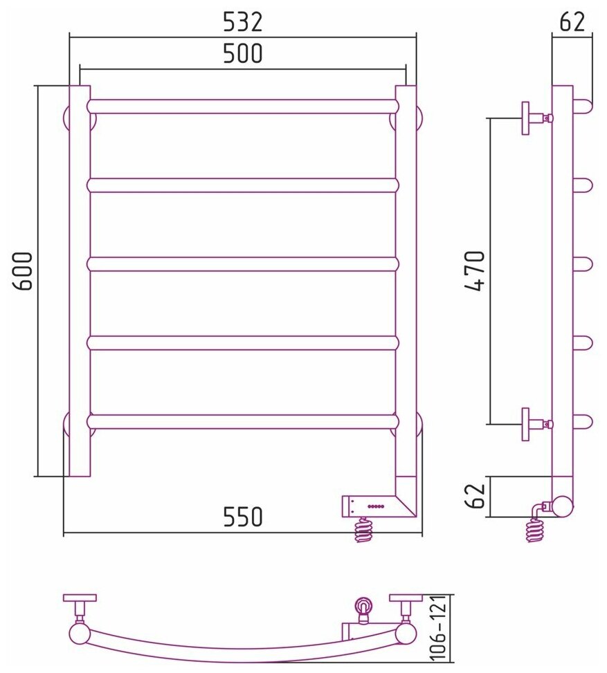 Полотенцесушитель Электрический Тругор Пэк сп 5 П 60х50 черный ВГП