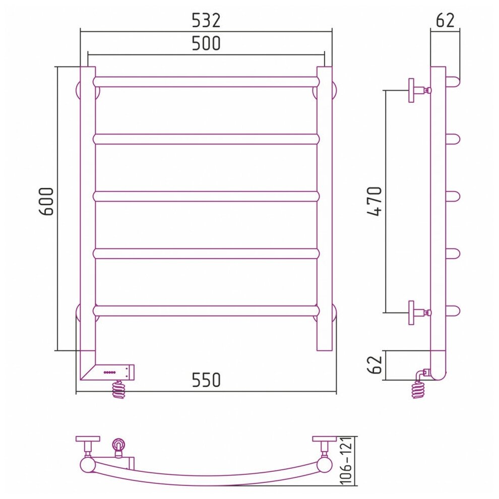 Полотенцесушитель Электрический Тругор Пэк сп 5 П 60х50 черный ВГП