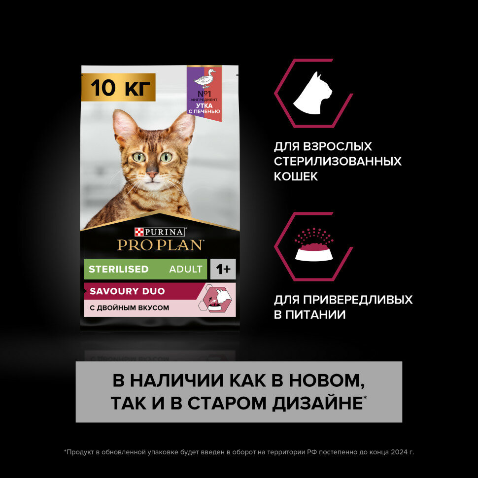 Сухой корм для кошек Pro Plan Sterilised для стерилизованных кошек с уткой и печенью, 10 кг
