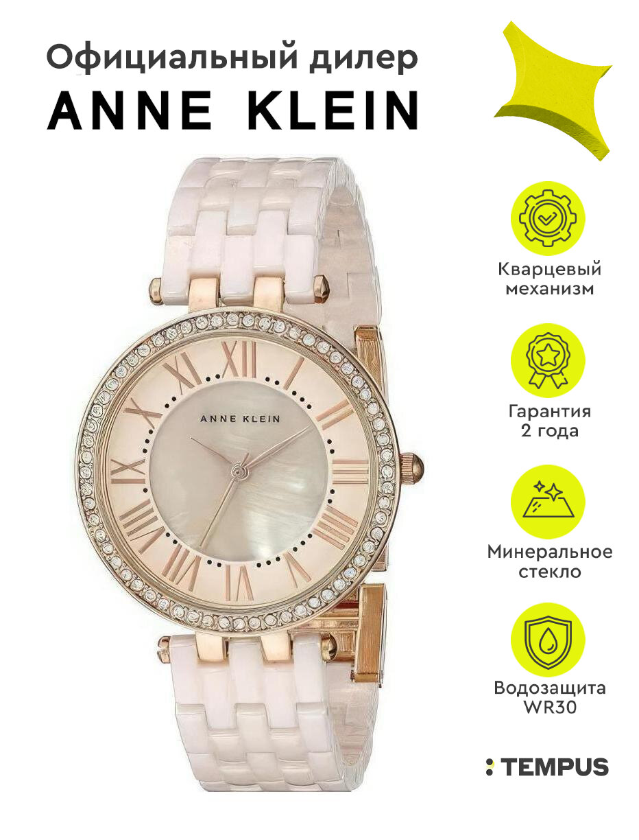 Часы наручные женские Anne Klein 2130RGLP, Кварцевые, 40 мм