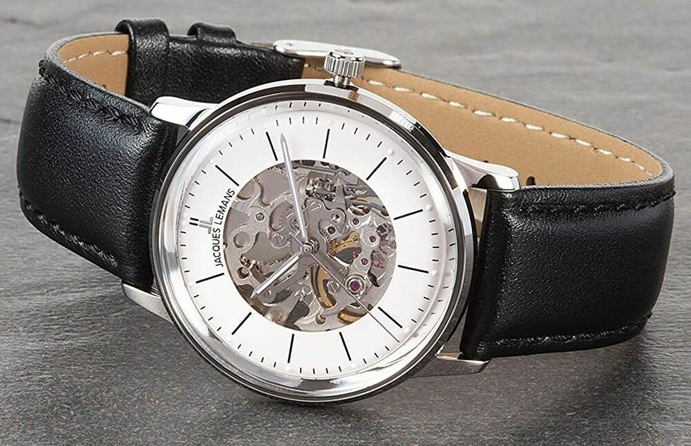 Наручные часы Jacques Lemans N-207ZA, механические часы Жак Леман скелетон на кожаном ремне