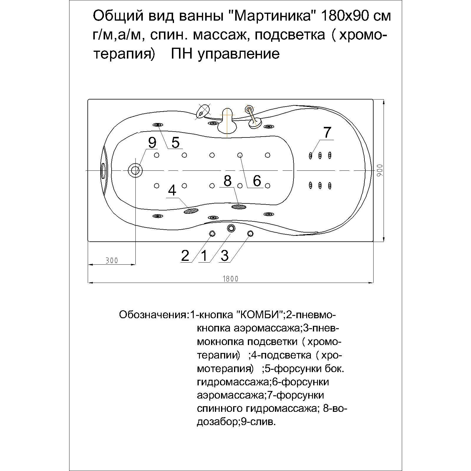 Акриловая ванна Aquatek Мартиника 180х90 MAR180-0000053 (без гидромассажа, без фронтального экрана)