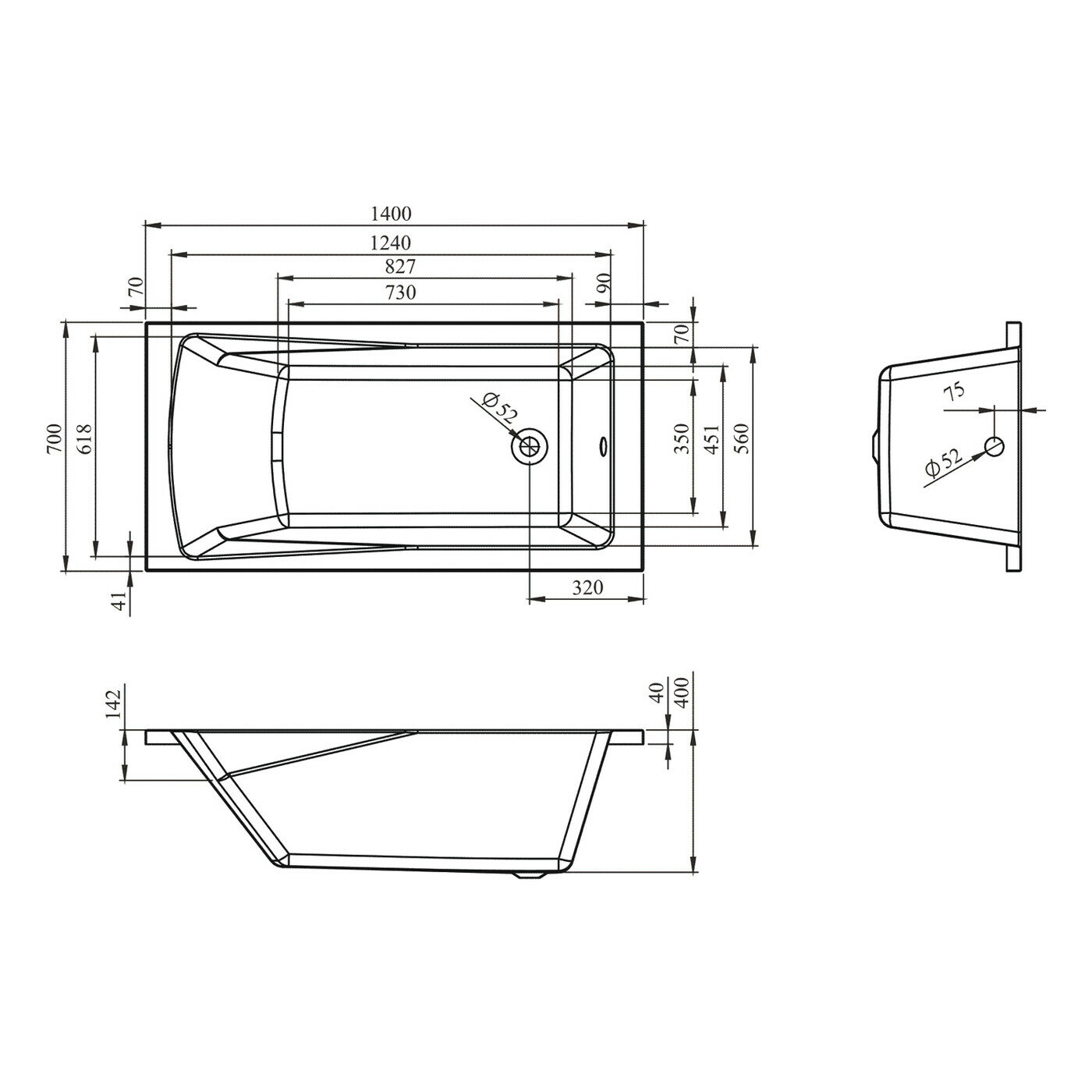 Акриловая ванна 140x70 Lavinia Boho One 37010040: прямоугольная ванна 140 x 70 из литьевого акрила с усиленным армированным корпусом