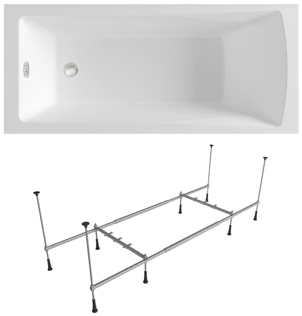 Акриловая ванна 180x80 с каркасом Lavinia Boho Pure S1-37100080 в наборе 2 в 1: прямоугольная ванна 180 x 80 см, каркас