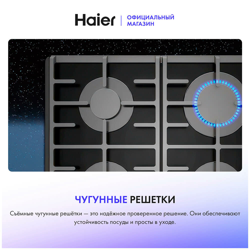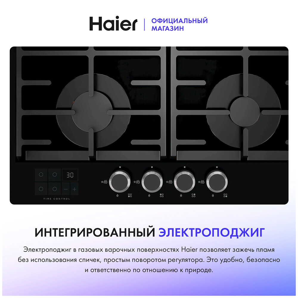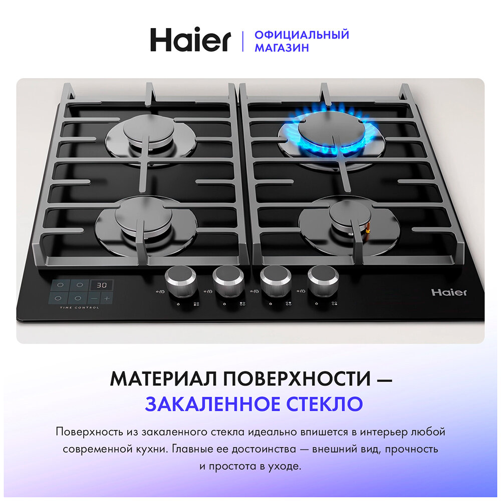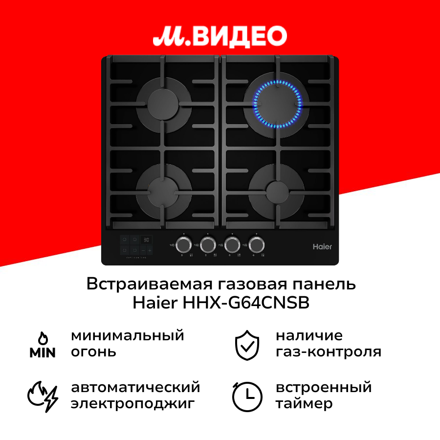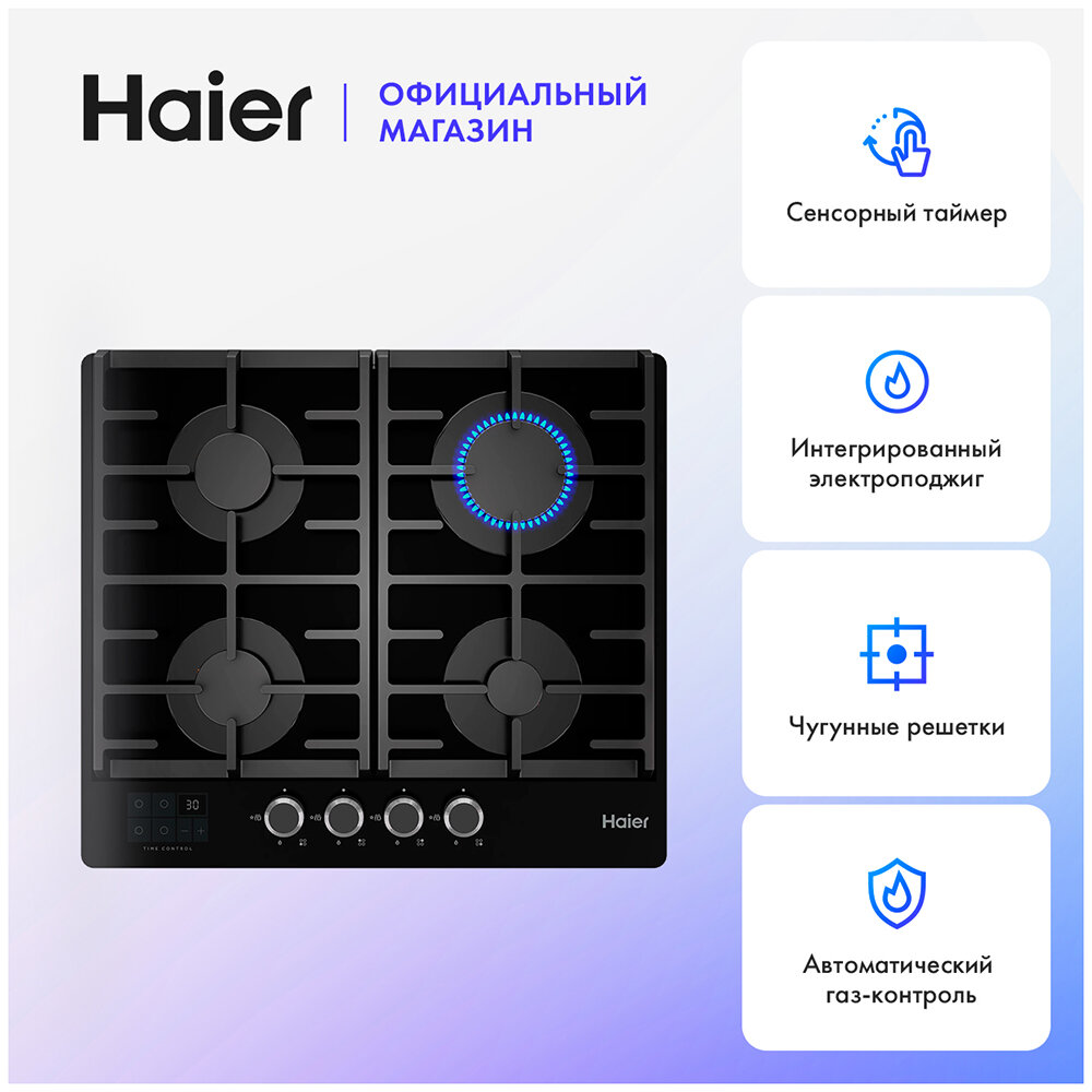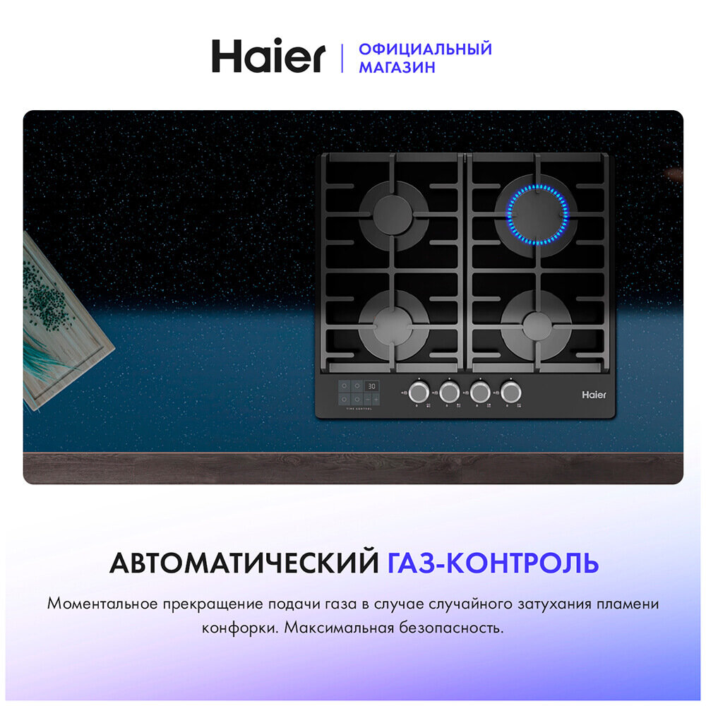 Встраиваемая газовая панель независимая Haier HHX-G64CNSB интересное: