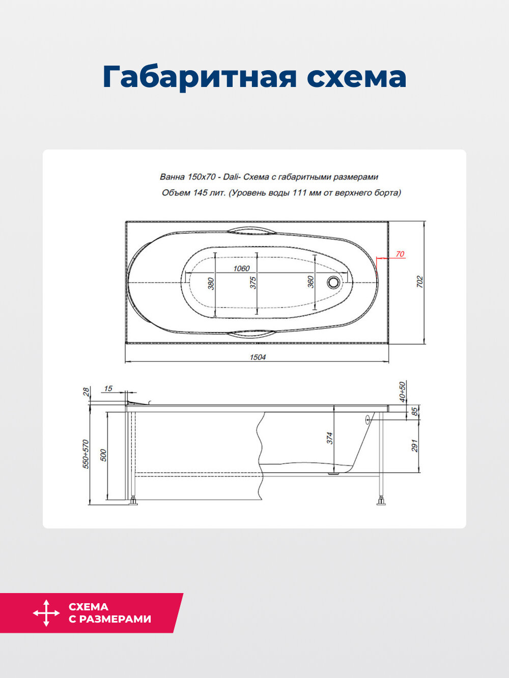 Акриловая ванна Aquanet Dali 150x70 00239540 с каркасом, цвет белый интересное: