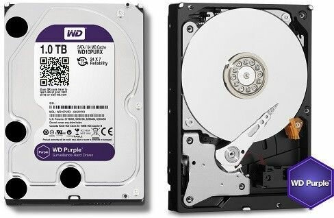 Жесткий диск 1TB SATA 6Gb/s Western Digital WD10PURZ 3.5" WD Purple DV IntelliPower 64MB 24x7 Bulk