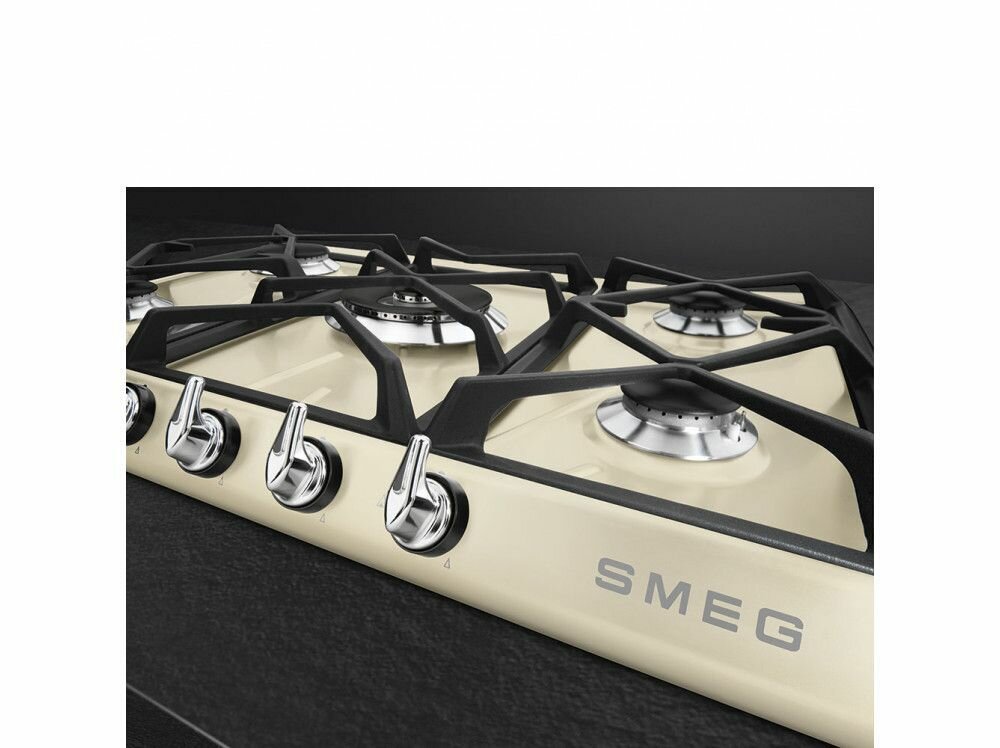 Встраиваемые газовые панели SMEG/ Газ, Victoria, газовая варочная панель, 70 см, кремовая