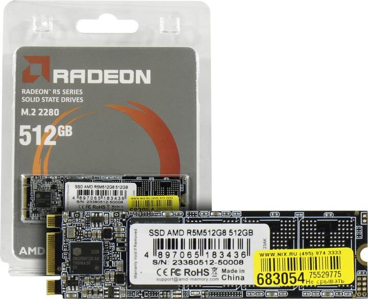 Твердотельный накопитель SSD M.2 2280 512GB AMD Radeon R5 Client SSD R5M512G8 Sata 6Gb/s, 3D Tlc, RT