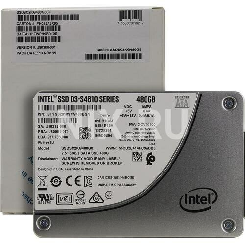 Твердотельный накопитель SSD 2.5" 480 Gb Intel DC D3-S4610 Read 560Mb/s Write 510Mb/s 3D NAND TLC SSDSC2KG480G801 963346