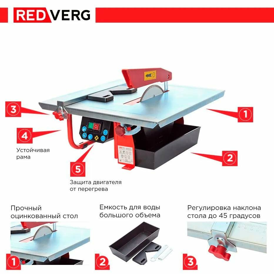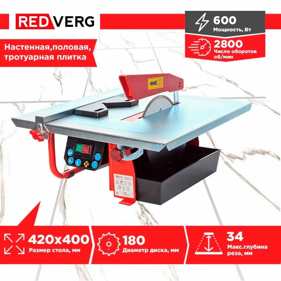 Плиткорез RedVerg RD-184103 настольный (600Вт,2800об/мин,диск 180х22,2мм,пропил 34мм) 7кг интересное: