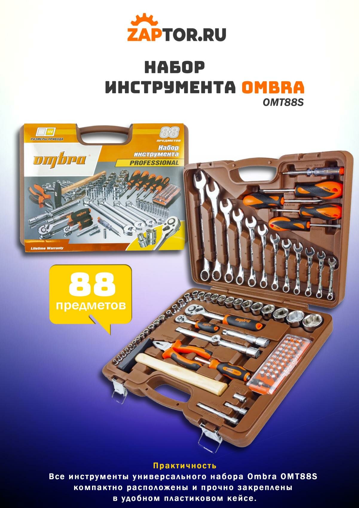 Набор инструмента универсальный 88 пр. OMT88S Ombra, 55015