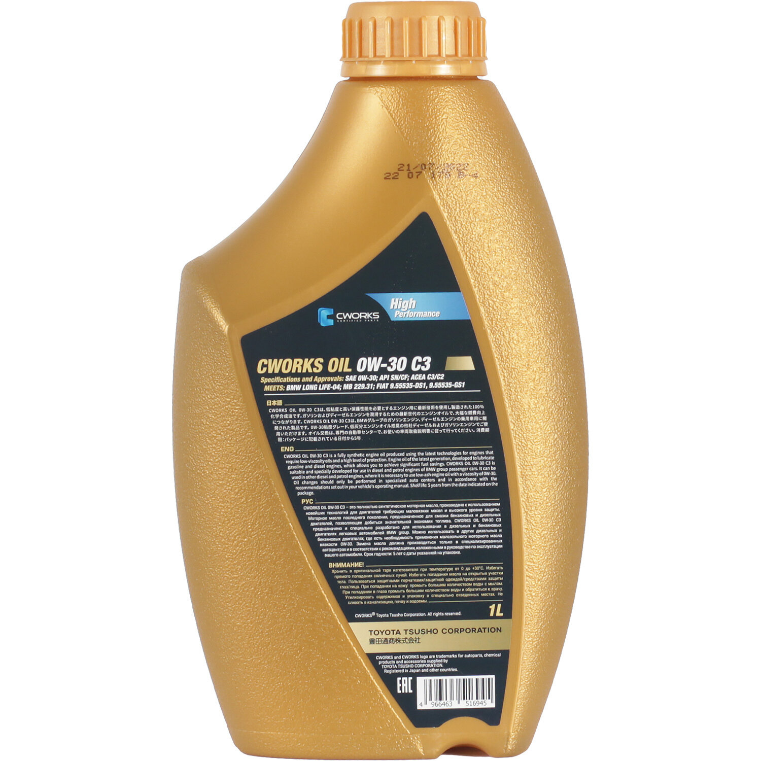 CWORKS Cworks Oil 0W30 (1L)_Масло Мотор! Синтacea C2/C3,Api Sn/Cf,Bmw Ll04, Mb 229.31, Fiat 9.55535Ds1/Gs1