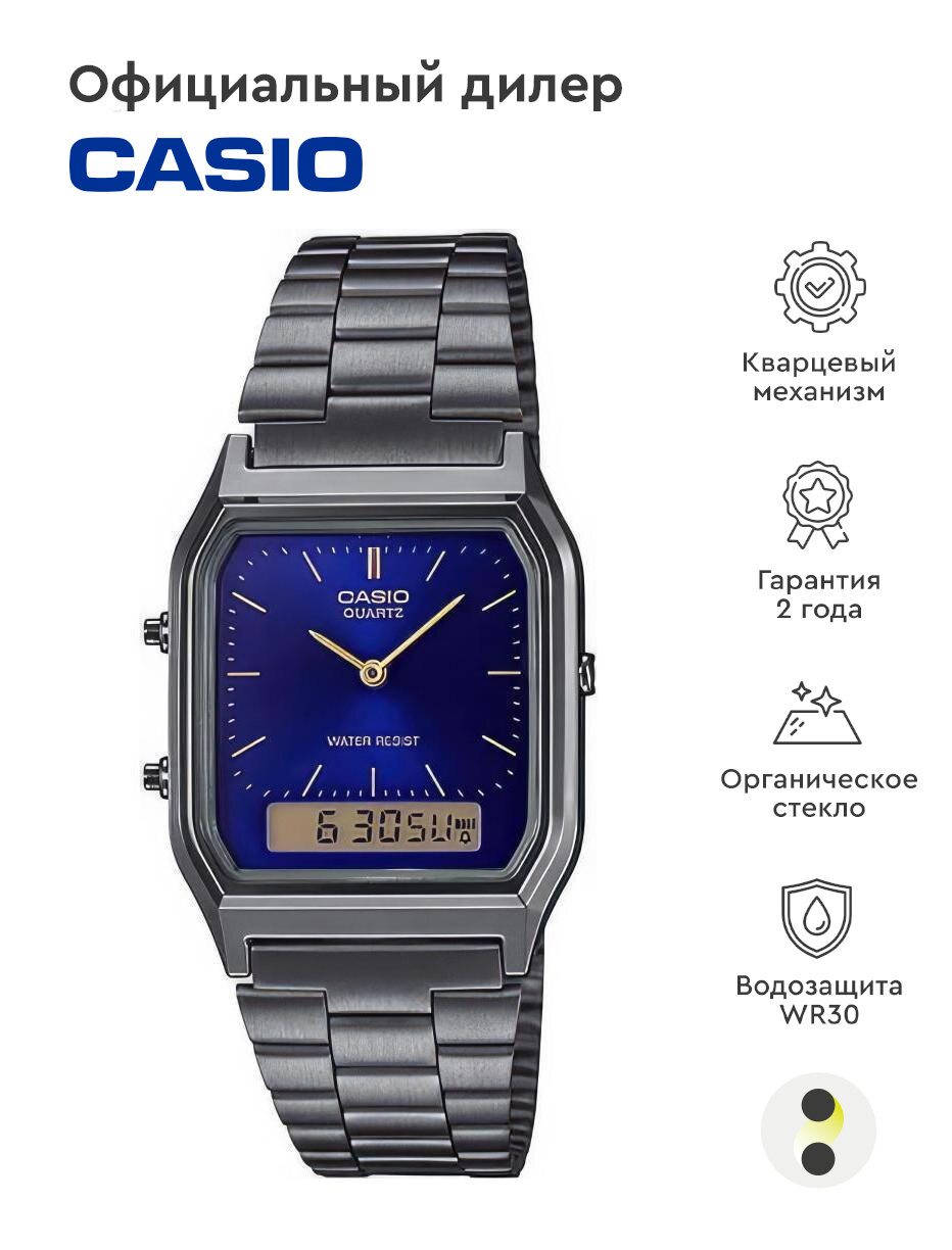 Наручные часы CASIO Vintage AQ-230GG-2A, черный, синий интересное: