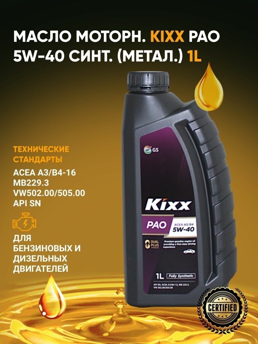 Kixx Масло Моторное Kixx Pao 5w-40 A3/B4 Синтетическое 1л L2110al1e1