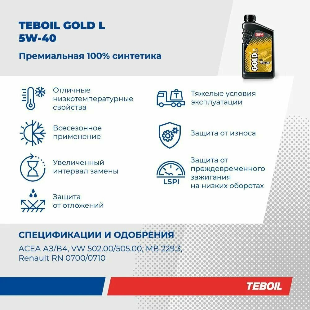 Синтетическое моторное масло Teboil Gold S 5W-40, 1 л, 1 кг, 1 шт